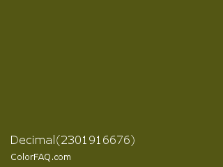 Decimal 2301916676 Color is a very dark yellow color and the nearest color is Saratoga #555b10. Hex code #535614 and RGB value is rgb(83,86,20). In RGB color space, this color is composed of 33% red, 34% green, 8% blue, In CMYK color space, this color is composed of 3% cyan, 0% magenta, 77% yellow , 66% black , In HSL color space, this color has a hue angle of 63° , 62% saturation and 21% lightness.