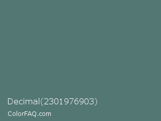 Decimal 2301976903 Color is a normal cyan color and the nearest color is Cutty Sark #507672. Hex code #537773 and RGB value is rgb(83,119,115). In RGB color space, this color is composed of 33% red, 47% green, 45% blue, In CMYK color space, this color is composed of 30% cyan, 0% magenta, 3% yellow , 53% black , In HSL color space, this color has a hue angle of 173° , 18% saturation and 40% lightness.