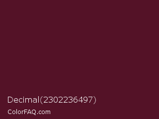Decimal 2302236497 Color is a very dark rose color and the nearest color is Maroon Oak #520c17. Hex code #541227 and RGB value is rgb(84,18,39). In RGB color space, this color is composed of 33% red, 7% green, 15% blue, In CMYK color space, this color is composed of 0% cyan, 79% magenta, 54% yellow , 67% black , In HSL color space, this color has a hue angle of 341° , 65% saturation and 20% lightness.