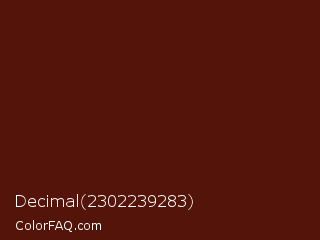 Decimal 2302239283 Color is a very dark red color and the nearest color is French Puce #4e1609. Hex code #541409 and RGB value is rgb(84,20,9). In RGB color space, this color is composed of 33% red, 8% green, 4% blue, In CMYK color space, this color is composed of 0% cyan, 76% magenta, 89% yellow , 67% black , In HSL color space, this color has a hue angle of 9° , 81% saturation and 18% lightness.