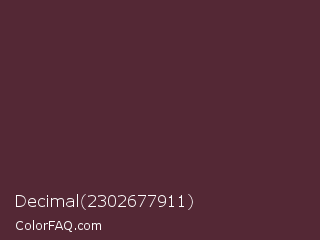 Decimal 2302677911 Color is a dark rose color and the nearest color is Livid Brown #4d282e. Hex code #542835 and RGB value is rgb(84,40,53). In RGB color space, this color is composed of 33% red, 16% green, 21% blue, In CMYK color space, this color is composed of 0% cyan, 52% magenta, 37% yellow , 67% black , In HSL color space, this color has a hue angle of 342° , 35% saturation and 24% lightness.