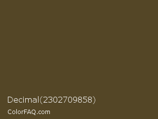 Decimal 2302709858 Color is a dark orange color and the nearest color is Judge Gray #544333. Hex code #544626 and RGB value is rgb(84,70,38). In RGB color space, this color is composed of 33% red, 27% green, 15% blue, In CMYK color space, this color is composed of 0% cyan, 17% magenta, 55% yellow , 67% black , In HSL color space, this color has a hue angle of 42° , 38% saturation and 24% lightness.