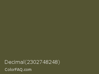 Decimal 2302748248 Color is a dark yellow color and the nearest color is Woodland #4d5328. Hex code #545432 and RGB value is rgb(84,84,50). In RGB color space, this color is composed of 33% red, 33% green, 20% blue, In CMYK color space, this color is composed of 0% cyan, 0% magenta, 40% yellow , 67% black , In HSL color space, this color has a hue angle of 60° , 25% saturation and 26% lightness.