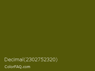 Decimal 2302752320 Color is a very dark yellow color and the nearest color is Saratoga #555b10. Hex code #545808 and RGB value is rgb(84,88,8). In RGB color space, this color is composed of 33% red, 35% green, 3% blue, In CMYK color space, this color is composed of 5% cyan, 0% magenta, 91% yellow , 65% black , In HSL color space, this color has a hue angle of 63° , 83% saturation and 19% lightness.