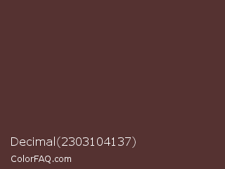 Decimal 2303104137 Color is a dark red color and the nearest color is Congo Brown #593737. Hex code #553231 and RGB value is rgb(85,50,49). In RGB color space, this color is composed of 33% red, 20% green, 19% blue, In CMYK color space, this color is composed of 0% cyan, 41% magenta, 42% yellow , 67% black , In HSL color space, this color has a hue angle of 2° , 27% saturation and 26% lightness.