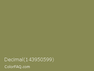 Decimal 143950599 Color is a normal yellow color and the nearest color is Dark Tan #918151. Hex code #888a53 and RGB value is rgb(136,138,83). In RGB color space, this color is composed of 53% red, 54% green, 33% blue, In CMYK color space, this color is composed of 1% cyan, 0% magenta, 40% yellow , 46% black , In HSL color space, this color has a hue angle of 62° , 25% saturation and 43% lightness.