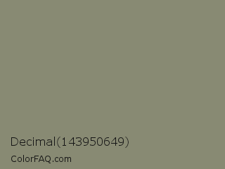 Decimal 143950649 Color is a normal yellow color and the nearest color is Bitter #868974. Hex code #888a73 and RGB value is rgb(136,138,115). In RGB color space, this color is composed of 53% red, 54% green, 45% blue, In CMYK color space, this color is composed of 1% cyan, 0% magenta, 17% yellow , 46% black , In HSL color space, this color has a hue angle of 65° , 9% saturation and 50% lightness.