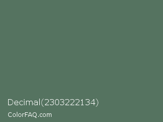 Decimal 2303222134 Color is a normal green color and the nearest color is Cactus #587156. Hex code #557360 and RGB value is rgb(85,115,96). In RGB color space, this color is composed of 33% red, 45% green, 38% blue, In CMYK color space, this color is composed of 26% cyan, 0% magenta, 17% yellow , 55% black , In HSL color space, this color has a hue angle of 142° , 15% saturation and 39% lightness.