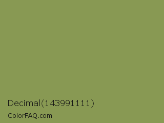 Decimal 143991111 Color is a normal lime color and the nearest color is Moss Green #8a9a5b. Hex code #889953 and RGB value is rgb(136,153,83). In RGB color space, this color is composed of 53% red, 60% green, 33% blue, In CMYK color space, this color is composed of 11% cyan, 0% magenta, 46% yellow , 40% black , In HSL color space, this color has a hue angle of 75° , 30% saturation and 46% lightness.