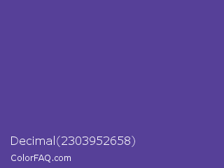 Decimal 2303952658 Color is a normal indigo color and the nearest color is Gigas #523c94. Hex code #564098 and RGB value is rgb(86,64,152). In RGB color space, this color is composed of 34% red, 25% green, 60% blue, In CMYK color space, this color is composed of 43% cyan, 58% magenta, 0% yellow , 40% black , In HSL color space, this color has a hue angle of 255° , 41% saturation and 42% lightness.