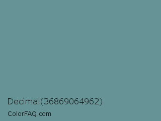 Decimal 36869064962 Color is a normal cyan color and the nearest color is Desaturated Cyan #669999. Hex code #669396 and RGB value is rgb(102,147,150). In RGB color space, this color is composed of 40% red, 58% green, 59% blue, In CMYK color space, this color is composed of 32% cyan, 2% magenta, 0% yellow , 41% black , In HSL color space, this color has a hue angle of 184° , 19% saturation and 49% lightness.