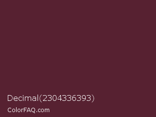 Decimal 2304336393 Color is a dark rose color and the nearest color is Wine Berry #591d35. Hex code #572131 and RGB value is rgb(87,33,49). In RGB color space, this color is composed of 34% red, 13% green, 19% blue, In CMYK color space, this color is composed of 0% cyan, 62% magenta, 44% yellow , 66% black , In HSL color space, this color has a hue angle of 342° , 45% saturation and 24% lightness.