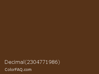 Decimal 2304771986 Color is a very dark orange color and the nearest color is Jambalaya #5b3013. Hex code #573318 and RGB value is rgb(87,51,24). In RGB color space, this color is composed of 34% red, 20% green, 9% blue, In CMYK color space, this color is composed of 0% cyan, 41% magenta, 72% yellow , 66% black , In HSL color space, this color has a hue angle of 26° , 57% saturation and 22% lightness.