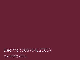 Decimal 36876412565 Color is a dark rose color and the nearest color is Tawny Port #692545. Hex code #682137 and RGB value is rgb(104,33,55). In RGB color space, this color is composed of 41% red, 13% green, 22% blue, In CMYK color space, this color is composed of 0% cyan, 68% magenta, 47% yellow , 59% black , In HSL color space, this color has a hue angle of 341° , 52% saturation and 27% lightness.