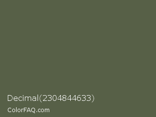 Decimal 2304844633 Color is a normal green color and the nearest color is Ebony #555d50. Hex code #576047 and RGB value is rgb(87,96,71). In RGB color space, this color is composed of 34% red, 38% green, 28% blue, In CMYK color space, this color is composed of 9% cyan, 0% magenta, 26% yellow , 62% black , In HSL color space, this color has a hue angle of 82° , 15% saturation and 33% lightness.