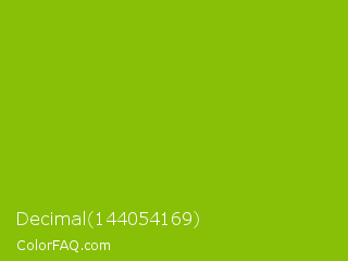Decimal 144054169 Color is a normal lime color and the nearest color is Apple Green #8db600. Hex code #88bf07 and RGB value is rgb(136,191,7). In RGB color space, this color is composed of 53% red, 75% green, 3% blue, In CMYK color space, this color is composed of 29% cyan, 0% magenta, 96% yellow , 25% black , In HSL color space, this color has a hue angle of 78° , 93% saturation and 39% lightness.