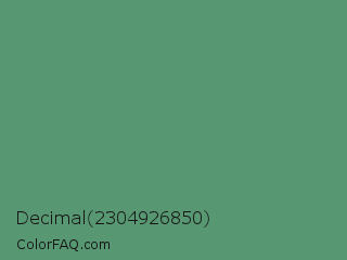 Decimal 2304926850 Color is a normal green color and the nearest color is Aqua Forest #5fa777. Hex code #579772 and RGB value is rgb(87,151,114). In RGB color space, this color is composed of 34% red, 59% green, 45% blue, In CMYK color space, this color is composed of 42% cyan, 0% magenta, 25% yellow , 41% black , In HSL color space, this color has a hue angle of 145° , 27% saturation and 47% lightness.