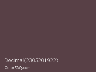 Decimal 2305201922 Color is a dark red color and the nearest color is Emperor #514649. Hex code #584046 and RGB value is rgb(88,64,70). In RGB color space, this color is composed of 35% red, 25% green, 27% blue, In CMYK color space, this color is composed of 0% cyan, 27% magenta, 20% yellow , 65% black , In HSL color space, this color has a hue angle of 345° , 16% saturation and 30% lightness.