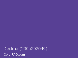 Decimal 2305202049 Color is a normal indigo color and the nearest color is Gigas #523c94. Hex code #584095 and RGB value is rgb(88,64,149). In RGB color space, this color is composed of 35% red, 25% green, 58% blue, In CMYK color space, this color is composed of 41% cyan, 57% magenta, 0% yellow , 42% black , In HSL color space, this color has a hue angle of 257° , 40% saturation and 42% lightness.