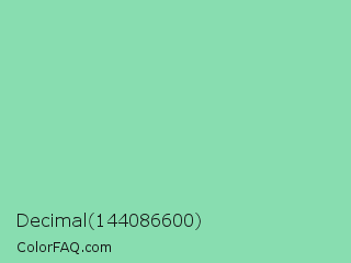 Decimal 144086600 Color is a light green color and the nearest color is Vista Blue #8fd6b4. Hex code #88ddb0 and RGB value is rgb(136,221,176). In RGB color space, this color is composed of 53% red, 87% green, 69% blue, In CMYK color space, this color is composed of 38% cyan, 0% magenta, 20% yellow , 13% black , In HSL color space, this color has a hue angle of 148° , 56% saturation and 70% lightness.