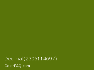 Decimal 2306114697 Color is a dark lime color and the nearest color is Avocado #568203. Hex code #597409 and RGB value is rgb(89,116,9). In RGB color space, this color is composed of 35% red, 45% green, 4% blue, In CMYK color space, this color is composed of 23% cyan, 0% magenta, 92% yellow , 55% black , In HSL color space, this color has a hue angle of 75° , 86% saturation and 25% lightness.