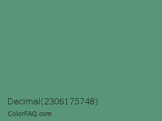 Decimal 2306175748 Color is a normal green color and the nearest color is Wintergreen Dream #56887d. Hex code #599678 and RGB value is rgb(89,150,120). In RGB color space, this color is composed of 35% red, 59% green, 47% blue, In CMYK color space, this color is composed of 41% cyan, 0% magenta, 20% yellow , 41% black , In HSL color space, this color has a hue angle of 150° , 26% saturation and 47% lightness.