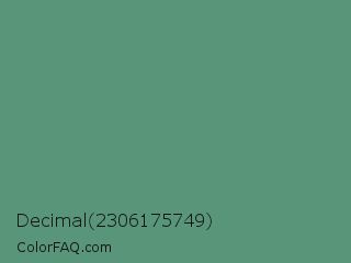 Decimal 2306175749 Color is a normal green color and the nearest color is Wintergreen Dream #56887d. Hex code #599679 and RGB value is rgb(89,150,121). In RGB color space, this color is composed of 35% red, 59% green, 47% blue, In CMYK color space, this color is composed of 41% cyan, 0% magenta, 19% yellow , 41% black , In HSL color space, this color has a hue angle of 151° , 26% saturation and 47% lightness.