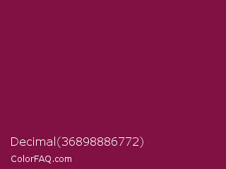 Decimal 36898886772 Color is a dark rose color and the nearest color is Rose Bud Cherry #800b47. Hex code #801142 and RGB value is rgb(128,17,66). In RGB color space, this color is composed of 50% red, 7% green, 26% blue, In CMYK color space, this color is composed of 0% cyan, 87% magenta, 48% yellow , 50% black , In HSL color space, this color has a hue angle of 334° , 77% saturation and 28% lightness.