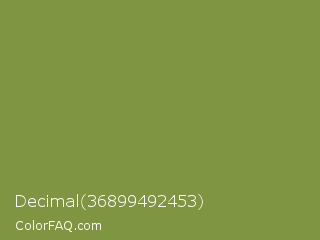 Decimal 36899492453 Color is a normal lime color and the nearest color is Palm Leaf #6f9940. Hex code #809541 and RGB value is rgb(128,149,65). In RGB color space, this color is composed of 50% red, 58% green, 25% blue, In CMYK color space, this color is composed of 14% cyan, 0% magenta, 56% yellow , 42% black , In HSL color space, this color has a hue angle of 75° , 39% saturation and 42% lightness.