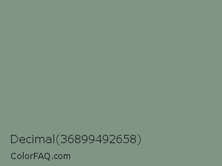 Decimal 36899492658 Color is a normal green color and the nearest color is Spanish Green #819885. Hex code #809584 and RGB value is rgb(128,149,132). In RGB color space, this color is composed of 50% red, 58% green, 52% blue, In CMYK color space, this color is composed of 14% cyan, 0% magenta, 11% yellow , 42% black , In HSL color space, this color has a hue angle of 131° , 9% saturation and 54% lightness.