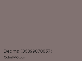 Decimal 36899870857 Color is a normal red color and the nearest color is Spicy Pink #816e71. Hex code #817271 and RGB value is rgb(129,114,113). In RGB color space, this color is composed of 51% red, 45% green, 44% blue, In CMYK color space, this color is composed of 0% cyan, 12% magenta, 12% yellow , 49% black , In HSL color space, this color has a hue angle of 4° , 7% saturation and 47% lightness.