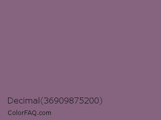 Decimal 36909875200 Color is a normal magenta color and the nearest color is Chinese Violet #856088. Hex code #866480 and RGB value is rgb(134,100,128). In RGB color space, this color is composed of 53% red, 39% green, 50% blue, In CMYK color space, this color is composed of 0% cyan, 25% magenta, 4% yellow , 47% black , In HSL color space, this color has a hue angle of 311° , 15% saturation and 46% lightness.