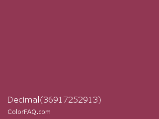 Decimal 36917252913 Color is a normal rose color and the nearest color is Quinacridone Magenta #8e3a59. Hex code #913753 and RGB value is rgb(145,55,83). In RGB color space, this color is composed of 57% red, 22% green, 33% blue, In CMYK color space, this color is composed of 0% cyan, 62% magenta, 43% yellow , 43% black , In HSL color space, this color has a hue angle of 341° , 45% saturation and 39% lightness.