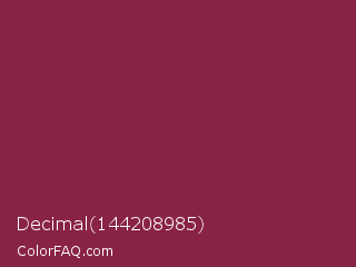 Decimal 144208985 Color is a normal rose color and the nearest color is Big Dip O Ruby #9c2542. Hex code #892343 and RGB value is rgb(137,35,67). In RGB color space, this color is composed of 54% red, 14% green, 26% blue, In CMYK color space, this color is composed of 0% cyan, 74% magenta, 51% yellow , 46% black , In HSL color space, this color has a hue angle of 341° , 59% saturation and 34% lightness.