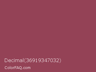 Decimal 36919347032 Color is a normal red color and the nearest color is Quinacridone Magenta #8e3a59. Hex code #944256 and RGB value is rgb(148,66,86). In RGB color space, this color is composed of 58% red, 26% green, 34% blue, In CMYK color space, this color is composed of 0% cyan, 55% magenta, 42% yellow , 42% black , In HSL color space, this color has a hue angle of 345° , 38% saturation and 42% lightness.