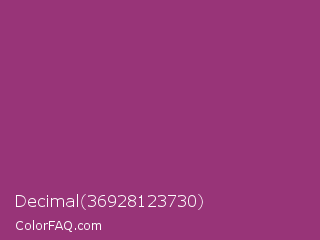 Decimal 36928123730 Color is a normal magenta color and the nearest color is Maximum Red Purple #a63a79. Hex code #983478 and RGB value is rgb(152,52,120). In RGB color space, this color is composed of 60% red, 20% green, 47% blue, In CMYK color space, this color is composed of 0% cyan, 66% magenta, 21% yellow , 40% black , In HSL color space, this color has a hue angle of 319° , 49% saturation and 40% lightness.