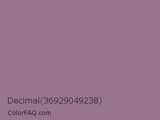 Decimal 36929049238 Color is a normal magenta color and the nearest color is Mountbatten Pink #997a8d. Hex code #997490 and RGB value is rgb(153,116,144). In RGB color space, this color is composed of 60% red, 45% green, 56% blue, In CMYK color space, this color is composed of 0% cyan, 24% magenta, 6% yellow , 40% black , In HSL color space, this color has a hue angle of 315° , 15% saturation and 53% lightness.