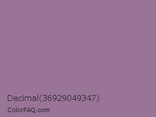 Decimal 36929049347 Color is a normal magenta color and the nearest color is Mountbatten Pink #997a8d. Hex code #997497 and RGB value is rgb(153,116,151). In RGB color space, this color is composed of 60% red, 45% green, 59% blue, In CMYK color space, this color is composed of 0% cyan, 24% magenta, 1% yellow , 40% black , In HSL color space, this color has a hue angle of 303° , 15% saturation and 53% lightness.