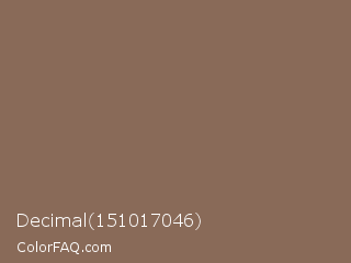 Decimal 151017046 Color is a normal orange color and the nearest color is Pastel Brown #836953. Hex code #896a58 and RGB value is rgb(137,106,88). In RGB color space, this color is composed of 54% red, 42% green, 35% blue, In CMYK color space, this color is composed of 0% cyan, 23% magenta, 36% yellow , 46% black , In HSL color space, this color has a hue angle of 22° , 22% saturation and 44% lightness.