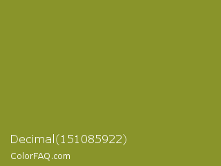 Decimal 151085922 Color is a normal yellow color and the nearest color is Sycamore #908d39. Hex code #89942a and RGB value is rgb(137,148,42). In RGB color space, this color is composed of 54% red, 58% green, 16% blue, In CMYK color space, this color is composed of 7% cyan, 0% magenta, 72% yellow , 42% black , In HSL color space, this color has a hue angle of 66° , 56% saturation and 37% lightness.