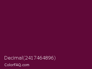 Decimal 2417464896 Color is a very dark magenta color and the nearest color is Mulberry Wood #5c0536. Hex code #600838 and RGB value is rgb(96,8,56). In RGB color space, this color is composed of 38% red, 3% green, 22% blue, In CMYK color space, this color is composed of 0% cyan, 92% magenta, 42% yellow , 62% black , In HSL color space, this color has a hue angle of 327° , 85% saturation and 20% lightness.