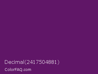 Decimal 2417504881 Color is a dark magenta color and the nearest color is Honey Flower #4f1c70. Hex code #601667 and RGB value is rgb(96,22,103). In RGB color space, this color is composed of 38% red, 9% green, 40% blue, In CMYK color space, this color is composed of 7% cyan, 79% magenta, 0% yellow , 60% black , In HSL color space, this color has a hue angle of 295° , 65% saturation and 25% lightness.