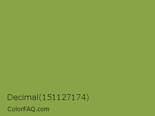 Decimal 151127174 Color is a normal lime color and the nearest color is Sushi #87ab39. Hex code #89a446 and RGB value is rgb(137,164,70). In RGB color space, this color is composed of 54% red, 64% green, 27% blue, In CMYK color space, this color is composed of 16% cyan, 0% magenta, 57% yellow , 36% black , In HSL color space, this color has a hue angle of 77° , 40% saturation and 46% lightness.