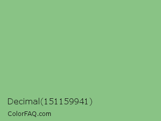 Decimal 151159941 Color is a light green color and the nearest color is Dark Sea Green #8fbc8f. Hex code #89c385 and RGB value is rgb(137,195,133). In RGB color space, this color is composed of 54% red, 76% green, 52% blue, In CMYK color space, this color is composed of 30% cyan, 0% magenta, 32% yellow , 24% black , In HSL color space, this color has a hue angle of 116° , 34% saturation and 64% lightness.