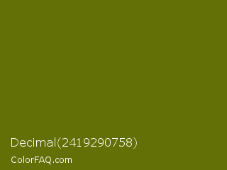 Decimal 2419290758 Color is a dark yellow color and the nearest color is Bronze Yellow #737000. Hex code #627006 and RGB value is rgb(98,112,6). In RGB color space, this color is composed of 38% red, 44% green, 2% blue, In CMYK color space, this color is composed of 13% cyan, 0% magenta, 95% yellow , 56% black , In HSL color space, this color has a hue angle of 68° , 90% saturation and 23% lightness.