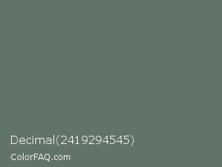 Decimal 2419294545 Color is a normal green color and the nearest color is Corduroy #606e68. Hex code #627367 and RGB value is rgb(98,115,103). In RGB color space, this color is composed of 38% red, 45% green, 40% blue, In CMYK color space, this color is composed of 15% cyan, 0% magenta, 10% yellow , 55% black , In HSL color space, this color has a hue angle of 138° , 8% saturation and 42% lightness.