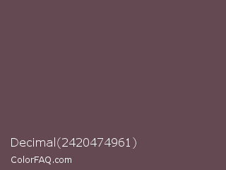 Decimal 2420474961 Color is a normal rose color and the nearest color is Don Juan #5d4c51. Hex code #644953 and RGB value is rgb(100,73,83). In RGB color space, this color is composed of 39% red, 29% green, 33% blue, In CMYK color space, this color is composed of 0% cyan, 27% magenta, 17% yellow , 61% black , In HSL color space, this color has a hue angle of 338° , 16% saturation and 34% lightness.