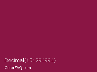 Decimal 151294994 Color is a normal rose color and the nearest color is Disco #871550. Hex code #8a1544 and RGB value is rgb(138,21,68). In RGB color space, this color is composed of 54% red, 8% green, 27% blue, In CMYK color space, this color is composed of 0% cyan, 85% magenta, 51% yellow , 46% black , In HSL color space, this color has a hue angle of 336° , 74% saturation and 31% lightness.