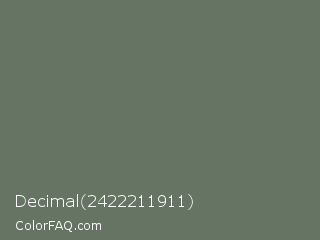 Decimal 2422211911 Color is a normal green color and the nearest color is Willow Grove #65745d. Hex code #667463 and RGB value is rgb(102,116,99). In RGB color space, this color is composed of 40% red, 45% green, 39% blue, In CMYK color space, this color is composed of 12% cyan, 0% magenta, 15% yellow , 55% black , In HSL color space, this color has a hue angle of 109° , 8% saturation and 42% lightness.