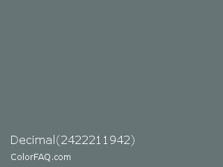 Decimal 2422211942 Color is a normal cyan color and the nearest color is Nevada #646e75. Hex code #667476 and RGB value is rgb(102,116,118). In RGB color space, this color is composed of 40% red, 45% green, 46% blue, In CMYK color space, this color is composed of 14% cyan, 2% magenta, 0% yellow , 54% black , In HSL color space, this color has a hue angle of 188° , 7% saturation and 43% lightness.